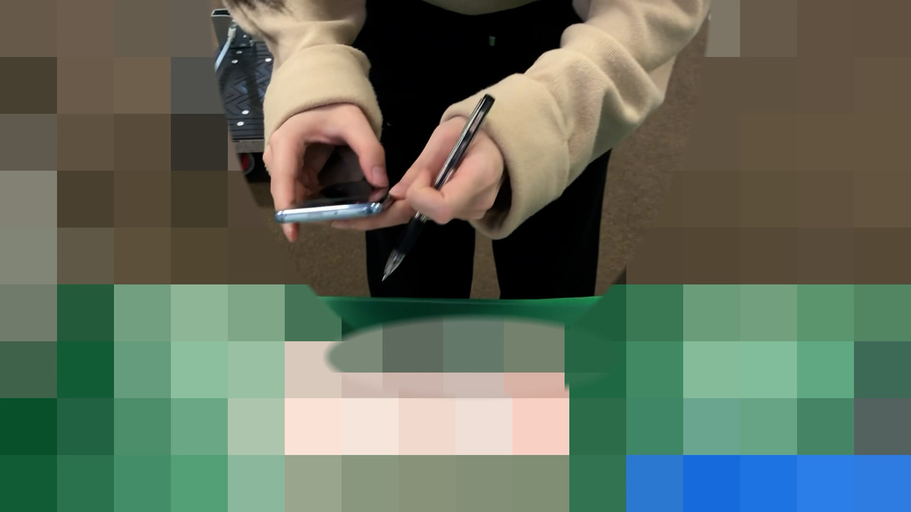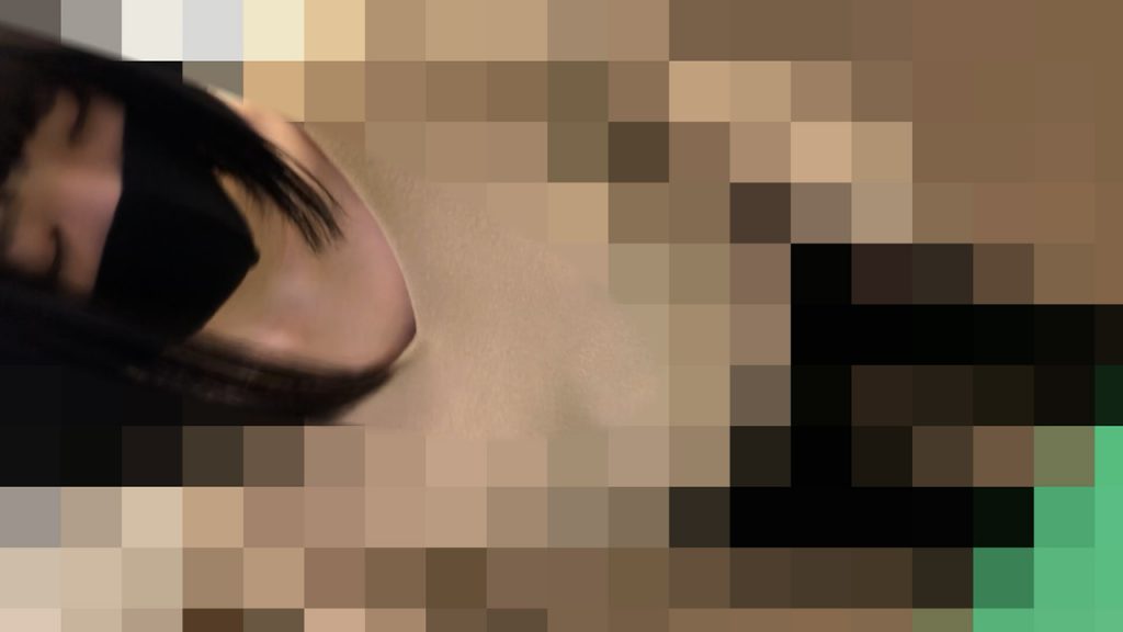 動画の冒頭、一瞬だけマスク越しですが顔が映り込みます。場所の特定防止のためにほとんどモザイク処理がされてしまっていますが、年齢的には20歳前後でタイトル通りの女子大生とお見受けします。この時点では前部分がゆるゆるのVネックのサマーニット的な上着なので、大きさ的にははっきりしませんが、後でかなりのカップの持ち主であることが判明します。