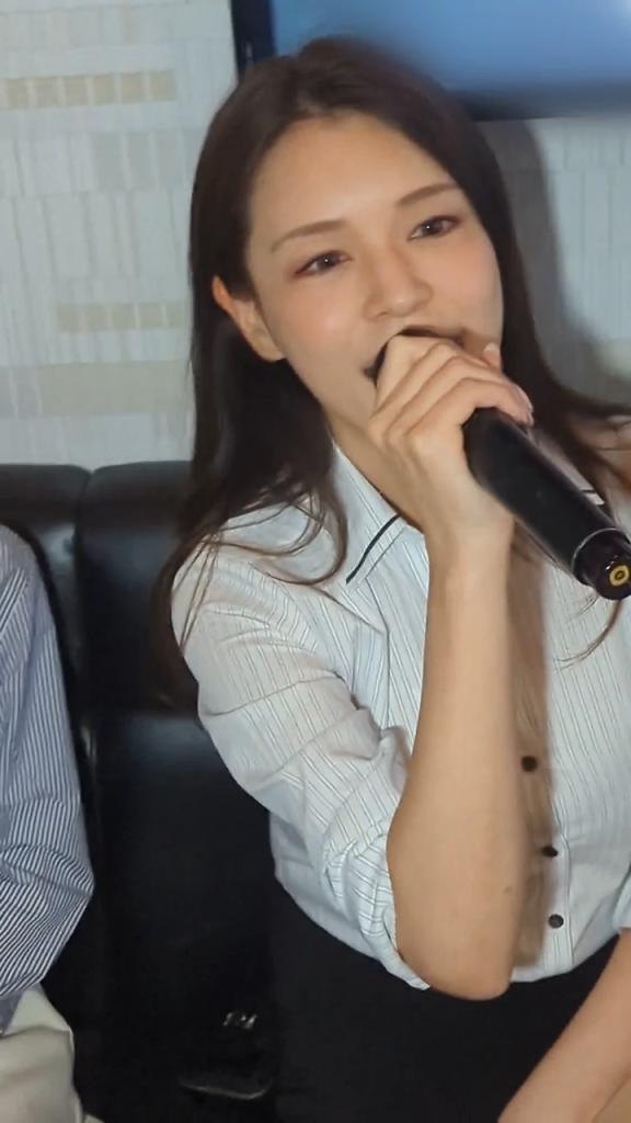 こんな感じで、カワイイ系の顔立ちでマイクを握ってるのが新人OLちゃんで、カラオケ中もノリが良く無邪気にパンチラしてくれます。