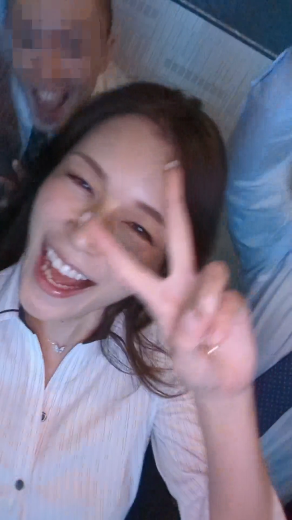 パンチラを撮影されるとは知らずに主任ちゃんもピースサインで盛り上がってます。