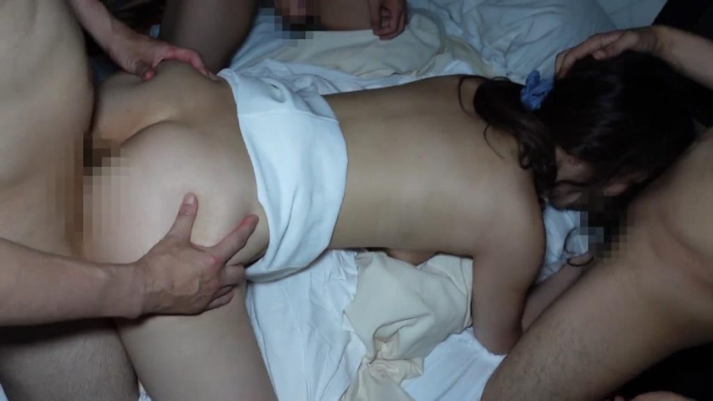 その後も入れ替わりチンコを突っ込まれてチャラリーマン全員で巨乳&美尻の超ダイナマイトボディーを堪能します。