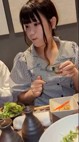 日本酒を勧められて、グイっと飲む仕草も愛らしい美人ちゃんです。